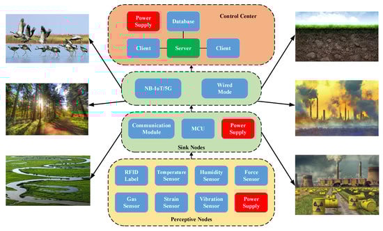 In many countries, intelligent environmental monitoring has become very popular. Many systems use various wireless LAN protocols to achieve environmental monitoring, such as the Home Radio Frequency (Home-RF), which is used in the sensor networks of some home devices, and the ZigBee protocol, with the physical layer and the medium access control layer following the IEEE 802.15.4 standard [16,17,18]. An ecological monitoring system for the distribution and habits of toads has been developed by the Australian Government [19]. The seabirds of Big Duck Island are monitored by an ecological monitoring system [20]. The IoT technology has also been widely used in the field of environmental monitoring. It uses monitoring devices, rather than sensing devices, and connects terminal testing devices or connects with end customers, environmental protection departments, and personal digital display monitoring systems, allowing people to understand the environmental conditions more intuitively and quickly.