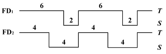 The first metric is used to describe the detection speed of a failure detector; the others are used to describe the detection accuracy of a failure detector. Because the mistake rate is not sufficient to describe the detection accuracy of a failure detector, it also employs query accuracy probability to indicate the detection accuracy. For example, node p is detected by FD1 and FD2 in Figure 2. In the whole detection process (16 s), node p is in a normal state. In Figure 2, T represents that the output of the failure detector is trusted, while the S represents that the output of the failure detector is suspect. For FD1, there are two false suspicions in the whole detection process. According to the definition of mistake rate, the mistake rate of FD1 is . The output of trust lasts 12 s, and it accounts for of the overall output. Therefore, this means that the query accuracy probability of FD1 is 0.75. For FD2, there are two false suspicions in the whole detection process. According to the definition of mistake rate, the mistake rate of FD2 is . The output of trust lasts 8 s, and it accounts for of the overall output. Thus, this means that the query accuracy probability of FD2 is 0.5. Both failure detectors have the same mistake rate (0.125), but they have different query accuracy probabilities (0.75 and 0.5).
