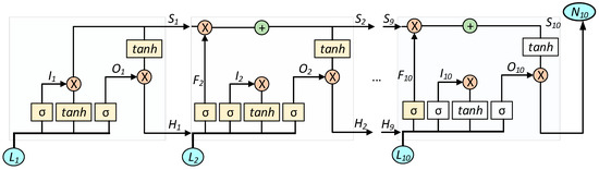 The recent success of machine learning models has been mostly made possible with the help of a combination of efficient deep machine learning algorithms applied on both visual and non-visual data in huge parametric space. Amongst different machine learning algorithms for sequential data modelling, LSTM overpowers others, such as the Artificial Neural Network (ANN) and CNN, which are mostly used for general and image data modelling, respectively. Hence, LSTM seems appropriate for this work, due to its time-sequence modelling capability. Figure 4 shows a sample RNN consisting of 10 LSTM units.
