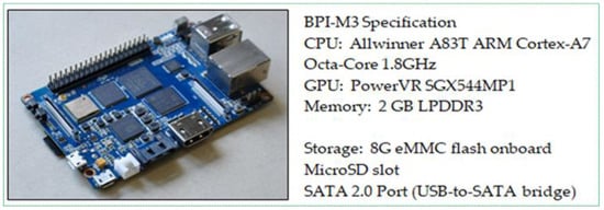 We improved the fire detection accuracy to 99.7%. With this result, we can detect any type of fire in the early stage, even on a very small scale. Finally, we adopted our method on the Banana Pi M3 (BPI M3) board, as shown in Figure 12, following which, the proposed method can be used with a smaller CNN to achieve a reduced processing time without any loss in accuracy. Running on BPI M3, a large CNN causes it to run very slowly and is technically expensive. To perform this task, we used only three layers of the improved YOLOv3. In the next section, we compare our method with existing methods to analyze the efficiency and performance.