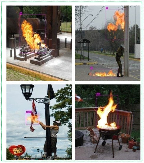 - Cao, C.; Tan, X.; Huang, X.; Zhang, Y.; Luo, Z. Study of Flame Detection based on Improved YOLOv4. J. Phys. 2021, 1952, 022016. [Google Scholar] [CrossRef]