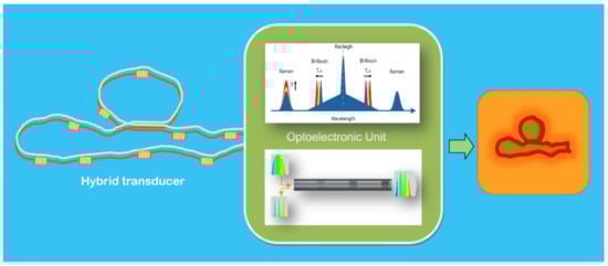 Fiber Bragg grating (FBG) and Raman-based distributed temperature sensors (RDTS) are to date widely used by many fields of industry for both quasi-distributed and distributed measurements (Figure 7). Furthermore, the combination of these two technologies is of great interest in industrial environments. It allows complete sensing of different structures: distributed temperature measurements and the structure and strain/temperature measurements in areas of particular interest. The distributed sensing does not have the required spatial resolution and exactness. Moreover, it offers cost-effective and low-complexity systems in comparison to other alternatives presented in the associated literature.
