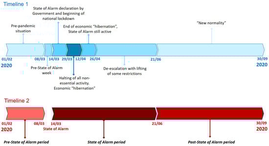 Figure 1. These phases can be grouped in 3 distinct periods according to the state of alarm declared in the country, as it is shown in Timeline 2 in