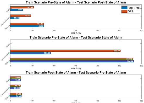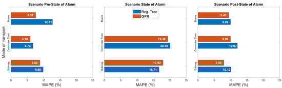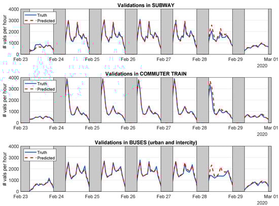 In the light of these results, we developed predictors of public transport demand, adapted to the specific behaviors of each phase of the pandemic. The GPR predictor achieved a high prediction performance with MAPE values below for pre- and post-state-of-alarm phases and below for the state-of-alarm scenario, where mobility patters are more variable. This accurate short-term predictors could significantly contribute to design transport policies capable of adapting to crisis and improve the quality of service of transportation systems in normal situations. Despite its contribution to the characterization of COVID-19’s impact on mobility in mid-size cities and the prediction of future demand, our work shows a spatial and temporal limitation inherent to its intrinsic data-driven nature. In this regard, the datasets we have used are specific to a certain municipality and temporal range. Considering the spatial component, further analysis performed on new datasets collected in other cities and towns throughout the world will surely shed light to particular aspects of the effects of COVID-19 on mobility. On the other hand, unfortunately, the pandemic is still an ongoing health issue; thus, the scientific community will have to keep on analyzing the temporal evolution of its impacts. COVID-19 is a global and open-ended crisis, which will imply a work in progress in the research field.