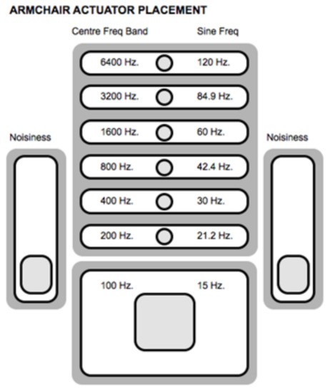 - Karam, M.; Branje, C.; Nespoli, G.; Thompson, N.; Russo, F.A.; Fels, D.I. The Emoti-Chair: An Interactive Tactile Music Exhibit. In Proceedings of the 28th of the International Conference Extended Abstracts on Human Factors in Computing Systems—CHI EA ’10, New York, NY, USA, 10–15 April 2010; p. 3069. [Google Scholar] [CrossRef]