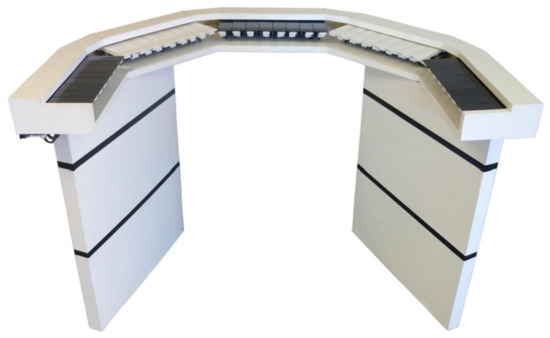 Real-time VMC has also been studied. In this case, a vibrotactile musical input device (VMID) is required. The VMID designed in [62], for instance, is a Nintendo Switch device with a tactile keyboard that renders vibrotactile signals presented to the performer by means of a VCA. One octave of notes are assigned to the keys from C-131 Hz to C-262 Hz that allows the performer to create complex vibrotactile compositions. Although there was no evidence to validate the performance of this VMID, it represents a suitable proposal for future exploration. Another device that has been designed is the Vibrochord [66] a piano-like VMID conceived exclusively to play vibrotactile compositions (see Figure 8). In this work, the authors propose an octave vibrotactile scale based on traditional western music, divided in numbers: 1—40 Hz, 2—56 Hz, 3—78.4 Hz, 4—109.76 Hz, 5—153.66 Hz, 6—215.12 Hz, 7—301.18 Hz, 8—421.65 Hz. To represent vibrotactile loudness, the keys of the Vibrochord respond to pressure, the harder they are played the higher is the intensity of vibrations, allowing the user greater expressiveness. The researchers have shown that vibrotactile music composition may require specific technology to allow more expressiveness and precision in real time playing. However, effects such as adaptation and learnability must be considered as the evaluation of performer or audience perception might be affected.
