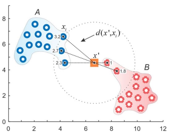 - Dudani, S.A. The Distance-Weighted k-Nearest-Neighbor Rule. IEEE Trans. Syst. Man Cybern. 1976, SMC-6, 325–327. [Google Scholar] [CrossRef]