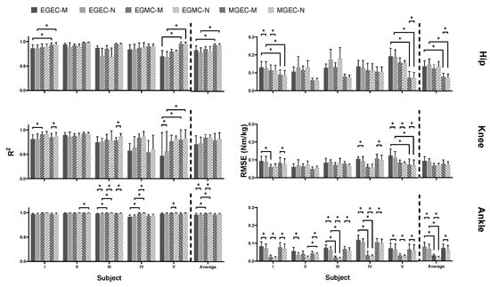 - Sartori, M.; Farina, D.; Lloyd, D. Hybrid neuromusculoskeletal modeling to best track joint moments using a balance between muscle excitations derived from electromyograms and optimization. J. Biomech. 2014, 47, 3613–3621. [Google Scholar] [CrossRef]