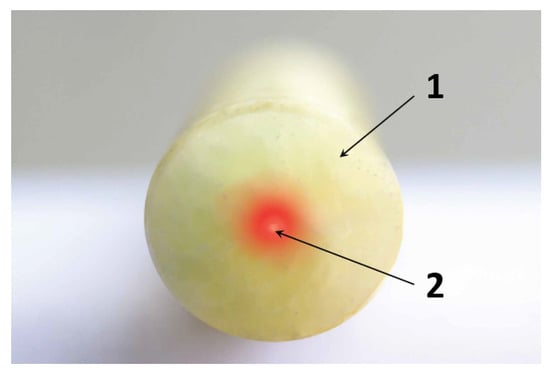 Cross-section of DFOS measurement sensor used for strain measurement. 1—monolithic core, 2—optic fiber [].