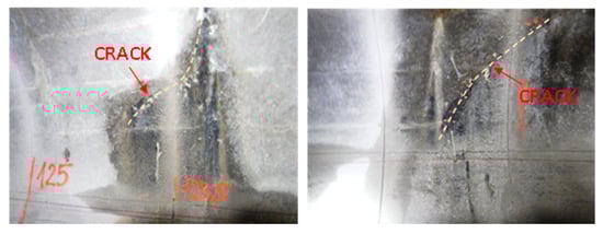 A particularly significant effect observed due to the DFOS measurements was revealing the original structure of the concrete collector casing, related to technological breaks during its construction. Increasing load on the concrete casing during the renovation works revealed cracks caused by technological breaks and changes in their widths were carefully analyzed during this process (Figure 15). Concrete casing sections originally constructed were from 2.2 to 2.9 m long. The application of monolithic fiber optic strain sensors allowed to identify all discontinuities in the collector structure and to observe their development over time (most of these cracks were undetectable by unarmed eye).
