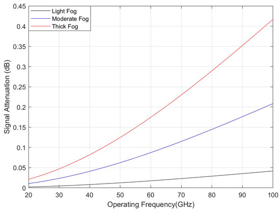 - ITU. Recommendation ITU-R P.840-6: Attenuation Due to Clouds and Fog; Radiocommunication Sector of International Telecommunication Union: Geneva, Switzerland, 2013. [Google Scholar]