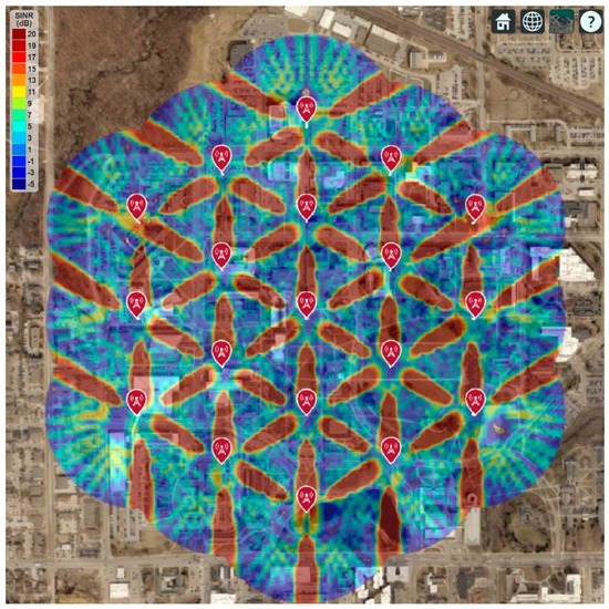 Several research works have already been published on 5G propagation modeling [42,43,44]. This paper shows the real-world 5G network coverage analysis using MATLAB and Google Map tools with free space propagation modeling. Since the terrain profile is used from the Google map, the accuracy of the simulation results depends on the updated Google maps. However, the system designer can obtain the local government’s updated city map for accurate RF coverage and signal analysis.