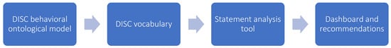 - The Classification Engine—the core engine of the tool, which contains the ontological data model of the DISC personality, including the lexical ontology for the Romanian language, in order to provide a semantic analysis of the social media statements.