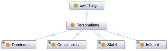 For each class, the ontology contains the following number of instances, specific to the Romanian language: Dominant—146, Influential—115, Steady—101, Compliant—106. Table 3 provides some examples of instances used for each personality type (the ontology contains the Romanian words and phrases):