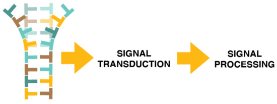 A simplistic illustration of the three components required in DNA-DNA hybridisation diagnostics: hybridisation of the target sequence to a DNA probe, a method to recognise that hybridisation, commonly referred to as the signal transduction method, and processing of that signal into a form compatible with end user requirement. Two of these components, the kinetics of DNA hybridization and the signal transduction method used to detect this hybridisation, determine the sensitivity of the method.