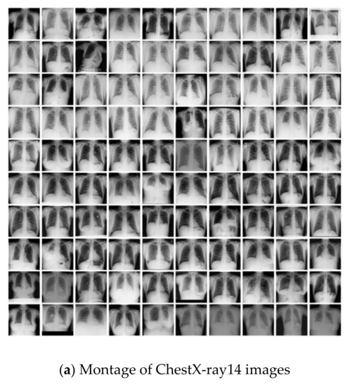 - Wang, X.; Peng, Y.; Lu, L.; Lu, Z.; Bagheri, M.; Summers, R.M. ChestX-ray8: Hospital-scale chest X-ray database and benchmarks on weakly-supervised classification and localization of common thorax diseases. In Proceedings of the IEEE Conference on Computer Vision and Pattern Recognition, Honolulu, HI, USA, 21–26 July 2017; pp. 2097–2106. [Google Scholar] [CrossRef]