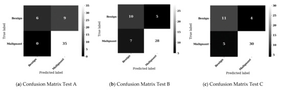 Experiment C, based on ResNet-50 with triple attention network, proved to be the most consistent deep learning classifier, with 217 out of 250, or 86.8% success rate compared to 86.0%, and 80.4% for experiments A and B, respectively. This aligned well with our earlier deep learning holdout testing results presented in Figure 5, Figure 6, Figure 7 and Figure 8, where experiment C provided the best overall results. All fitted decision trees, along with confusion matrices for each tree, have been made available as supplementary material.