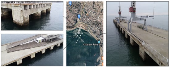 Port infrastructures are maritime engineering structures intended for cargo and/or passenger transfer operations due to their function of connectivity between the maritime and land sectors. Within these sectors, there are different typologies according to their orientation or impact on coastal dynamics [2]. These structures are constantly exposed to a marine environment; therefore, they have specific properties that differentiate them from infrastructures designed in less aggressive environments [1,13]. Major damage to port infrastructure results in costs for the repair of the structure itself and economic losses associated with loss of its economic activity due to inoperability while the repair work is being carried out [14]. Early detection of the potential structural pathologies of the infrastructure elements and early performance of the maintenance activities avoids a progressive deterioration, ensures its functionality, and ensures users’ safety. Early maintenance avoids incurring the high costs incurred in financing complex repair work in the event of collapse or large-scale breakage [1,2], reducing the risk of collapse in more complex situations, such as large seismic events and/or maritime phenomena such as tsunamis [15].