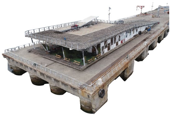 The application of our methodology and the case study involve certain obstacles. The main difficulty lies in the complete visualization of the structure, where it is not possible in certain cases. In the case study, it was not possible to access the pier’s piles, where, in addition, there were not good lighting conditions. This problem could be solved by accessing old plans of the structure, which are not always available. Another obstacle is the reconstruction of complex elements to model with photogrammetry. In this case, the cranes of the pier are elements that, to be well represented in the model, require a special flight strategy. To make the application of the methodology efficient, it is important to be clear about the detailed requirement of the elements to be controlled. In cases where a detail of the component is not required, a geometrically simplified version can be chosen, as in the case of the dock cranes.