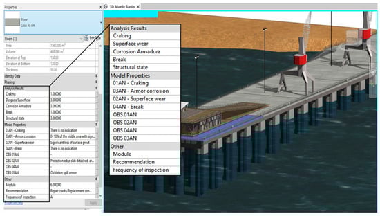 In this way, it is possible to visualize, in the model, both the structural state of the elements, their rating, the location parameters, the inspection frequency, and the recommended activities aligned to the automated forms that facilitate the inspection of the port infrastructure, keeping both platforms constantly updated.