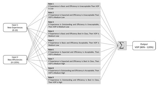 The antecedent and the consequent of a rule could have multiple parts [44,47], in this way, fuzzy rules were divided to specify the appropriate logic mapping based on the value offer performance (VOP), the rules developed for this scenario are shown in Figure 6.