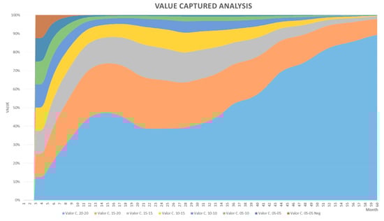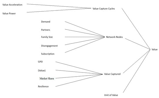 The subsystem’s value capture dynamics display behaviour that is increasingly logistic, which is represented in the increase of a variable when its density creates pressure over the intrinsic growth rate [49]. This behaviour is evidenced in the performed simulations and a summary can be observed in Figure 10.