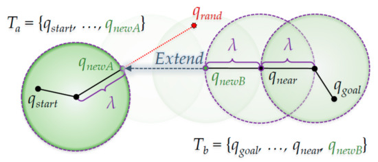 | Algorithm 5 Pseudocode of the Proposed ‘Extend’ Method for the RRT-Connect Algorithm | |