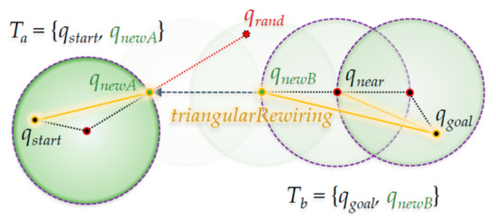 | Algorithm 4 Pseudocode of the Proposed ‘Triangular-Rewiring’ Method for the RRT-Connect Algorithm | |