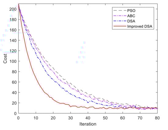 To find the most appropriate and , we present an improved DSA to enhance optimization efficiency. The DSA simulates the predatory process of dolphins for multi-dimensional numerical optimization problems with four phases, i.e., search, call, reception, and predation. This algorithm has numerous advantages of few parameters and strong search capability, which makes it have better global search ability and better stability compared with the conventional evolutionary algorithms 14.