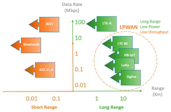 - Poursafar, N.; Alahi, M.E.E.; Mukhopadhyay, S. Long-range wireless technologies for IoT applications: A review. In Proceedings of the 2017 Eleventh International Conference on Sensing Technology (ICST), Sydney, NSW, Australia, 4–6 December 2017; pp. 1–6. [Google Scholar]