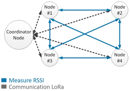 The transmission time diagram is shown in the Figure 6, in which we can see that the coordinating node of short Lora sends frame in multicast mode (a beacon signal) to synchronize the network and start the measurement, after which each of the nodes performs a multicast transmission to collect RSSI information from communication with the other nodes that are part of the subnet, sort LoRa.