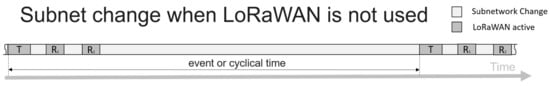 The Figure 5 shows the LoRaWAN vs. Short Lora transmission intervals. It is observed that the idle periods of the LoRaWAN network are high, this fact is used to implement the Short LoRa network that will carry out the communications during these idle periods of LoRaWAN. To avoid data collisions, the subnet works on a different channel than LoRaWAN.