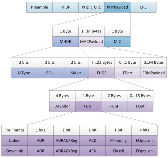 Figure 7 shown the standard LoRaWAN Radio PHY layer message structure in order to establish a comparison line with the protocol proposed in this paper.