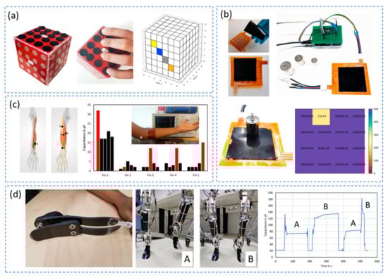 - Chen, L.; Liu, J.; Wang, X.; Ji, B.; Chen, X.; Yang, B. Flexible capacitive hydrogel tactile sensor with adjustable measurement range using liquid crystal and carbon nanotubes composites. IEEE Trans. Electron Devices 2017, 64, 1968–1972. [Google Scholar] [CrossRef]