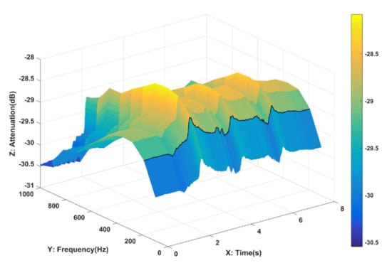Based on the multitone strategy, a time-frequency domain analysis for evaluating dynamic body channels is further proposed. Different from traditional evaluation methods, this analysis is able to reflect both the time-domain and frequency-domain characteristics of the dynamic body channel at a given time. Figure 10 shows the time-frequency domain characteristics of the body channel during three grip strength tests performed by the volunteer during an 8 s period. XZ axes show the variations in the dynamic body channel at each frequency for a specific period of time. YZ axes shows the motionless body channel characteristics similar to those of the traditional method. In the case of dynamic body channels, this approach provides a more comprehensive evaluation and richer information.