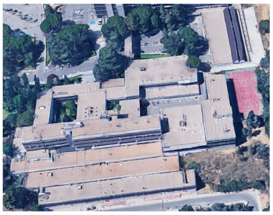 - Building A (Sanz Mancebo)—building with the largest number of classrooms and student laboratories, as well as some teachers’ offices, main hall, meeting room, evaluation rooms, assembly hall, library, canteen, student clubs, secretariat, and directors’ board.