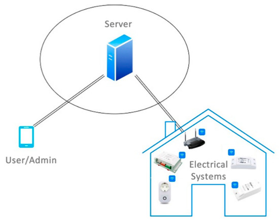 - The server, which manages the whole system by storing parameters received from electrical systems and its control policies. The server is the brain of the IoT system because it maintains the status of the different sensors, and, based on the policy rules, will apply automatic actions. The server will manage the communication protocols and procedures to retrieve information and apply actions. This procedure will be based on a publish/subscribe interaction (message queuing telemetry transport protocol), as described later.