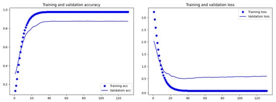 Figure 7 reports for the best 100-targets TCN classifier, the training and loss accuracy at the increasing of the epochs. The figure highlights that that accuracy and loss became stable starting from 40 epochs.