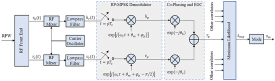 Here, equal noise power spectral density is assumed for horizontal and vertical polarized signals in (8). The signals are co-phased before EGC. The structure of coherent RP-MPSK receiver with EGC is shown in Figure 4.