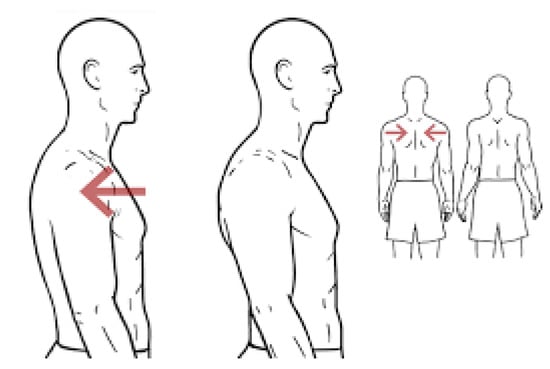Games also include a ludic and rewarding feature that consists in scoring the execution of exercises and showing the marks in rankings involving other users’ scores. Once the exercise is over, the resulting score and the updated ranking are displayed. The first part, as explained in the previous section, consists of comparing a target magnitude (e.g., an angle, a time frame, etc.) against an observed magnitude. The second part is more specific, as it depends on the nature of each exercise. As an example of evaluating the execution of an activity, a shoulder exercise called “scapular retraction” will be explained. Scapular retraction involves pulling the shoulder blades (scapulae) back toward the spine so that both scapulae are as close to each other as possible.