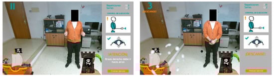 Figure 12, right). Once the gesture has been fully identified, the system changes the screen, and the exercise begins.