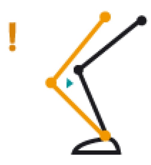 Figure 13 shows (in black) the correct position of the knees during a standard execution, where none of the knee joint is allowed to exceed the tip of the feet for it to be considered valid. However, this restriction has been relaxed for older people, allowing a deviation of up to 10 cm.
