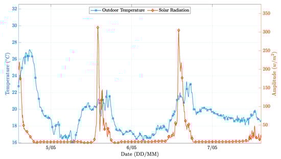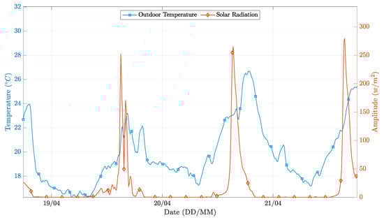 Abundant references can also be found in areas closely related to building indoor temperature control, such as greenhouse environment control, which has requirements and challenges that, in some aspects, approach the application scenarios addressed in this paper. Fuzzy logic controllers have been tested for a long while now. These controllers have the benefit of allowing the specification of different profiles for different desired outcomes. In particular, while in the context of greenhouses, controllers aim at efficiency rather than comfort, it is possible to define sets of rules for distinct requirements and objectives, namely buildings. It is known that the major problems of fuzzy logic controllers are the training and the definition of the set of rules. In [15], a human expert was used for creating this set of rules. However, in both [16,17], the use of a genetic algorithm was proposed to solve this problem. The impact of the incident solar radiation, wind speed, and outside temperature was also discussed. In these references, the proposed methods were evaluated only by simulation, using MATLAB/Simulink. These works are complementary to our proposal since their focus was only on the optimization of the controller itself and not on the benefits of introducing the outdoor variables into the regression phase.