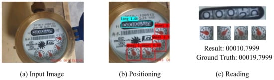 To solve these challenges, we leverage the techniques of CNN-based deep learning [8], including object detection [9], classification [10], and regression [11,12], to complete watermeter reading automatically. Our method requires manual taking the watermeter image and can automatically take this reading, which avoids the tedious reading process and ensures the reading’s accuracy in a low-cost way, effectively preventing artificial tampering with data and significantly improving efficiency and accuracy.