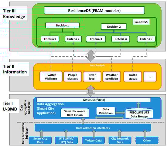 The article is organized as follows: in Section 2 is presented the related work; in Section 3 is defined the methodology to exploit U-BMD; in Section 4 is introduced the 3-TierS Resolute U-BMD Architecture to operationalize resilience management; in Section 5 is described the application of the RESOLUTE Architecture to a smart city scenario based on different data sources and data analysis; in Section 6 are provided the conclusions and forthcoming steps.
