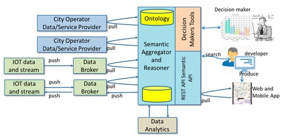 - Bellini, P.; Benigni, M.; Billero, R.; Nesi, P.; Rauch, N. Km4City ontology building vs data harvesting and cleaning for smart-city services. J. Vis. Lang. Comput. 2014, 25, 827–839. [Google Scholar] [CrossRef]
