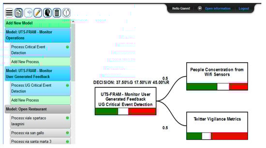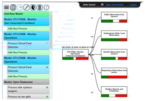 A semi-quantitative analysis based on Monte Carlo simulation is proposed in [44]. The idea is to evaluate the variability of the output of a function quantifying the resulting effect (amplifying, neutral, dampening) of the coupling between upstream and downstream functions. These approaches represent the remarkable effort of the FRAM community to move towards quantitative analysis. However, these approaches to FRAM quantification are not based on the heterogeneous and dynamic data as generated by a smart city. Their utility remains confined at the analysis level while the intent of the present work is to transform the FRAM model into a tool to support close to real time data driven decision making in an operational setting.