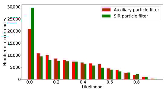 - Karlsson, R.; Bergman, N. Auxiliary particle filters for tracking a maneuvering target. In Proceedings of the 39th IEEE Conference on Decision and Control, Sydney, NSW, Australia, 12–15 December 2000; Volume 4, pp. 3891–3895. [Google Scholar] [CrossRef]