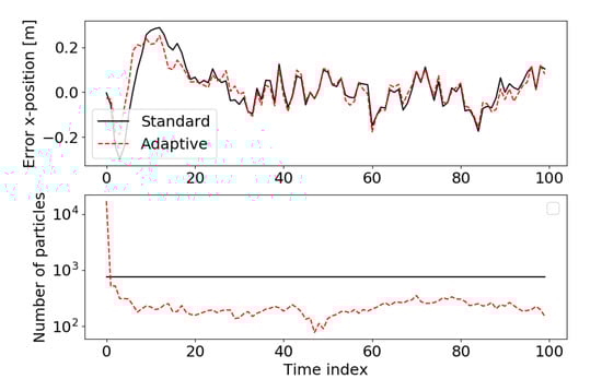- Straka, O.; Ŝimandl, M. A survey of sample size adaptation techniques for particle filters. IFAC Proc. Vol. 2009, 42, 1358–1363. [Google Scholar] [CrossRef]