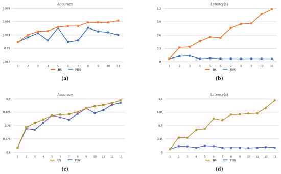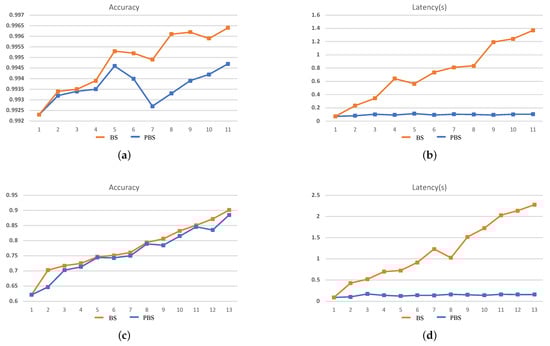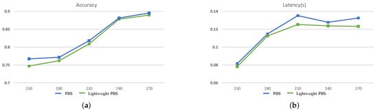 Under the three experimental settings, for the target device ZC706, on the MNIST dataset, compared with BS, the accuracy variation is −0.21%, −0.16%, and −0.21%, and the inference latency is reduced by 92.43%, 94.71%, and 94.66%. On the CIFAR-10 dataset, the accuracy variation is −2.20%, −1.51% and, −1.09%, while the inference latency is reduced by 87.44%, 90.59%, and 90.36%. For VC707, the accuracy variation is −0.17%, −0.17%, and −0.13%, and the inference latency is reduced by 90.57%, 92.40%, and 92.95%, respectively, on MNIST. Furthermore, on CIFAR-10, the accuracy variation is −1.44%, −1.89% and, −1.60%, and the inference latency is reduced by 90.41%, 92.91%, and 93.89%, respectively. The CNN searched by PBS gains a huge benefit on the inference latency only by sacrificing a tiny of accuracy. Therefore, PBS can search for a better CNN than BS for edge computing.